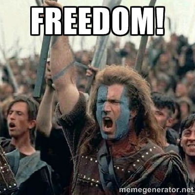 2. the power or right to act, speak, or think as one wants without hindrance or restraint.
